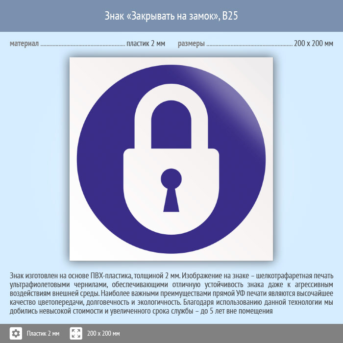 Знак «Закрывать на замок», B25 (пластик, 200х200 мм) в Улан-Удэ купить