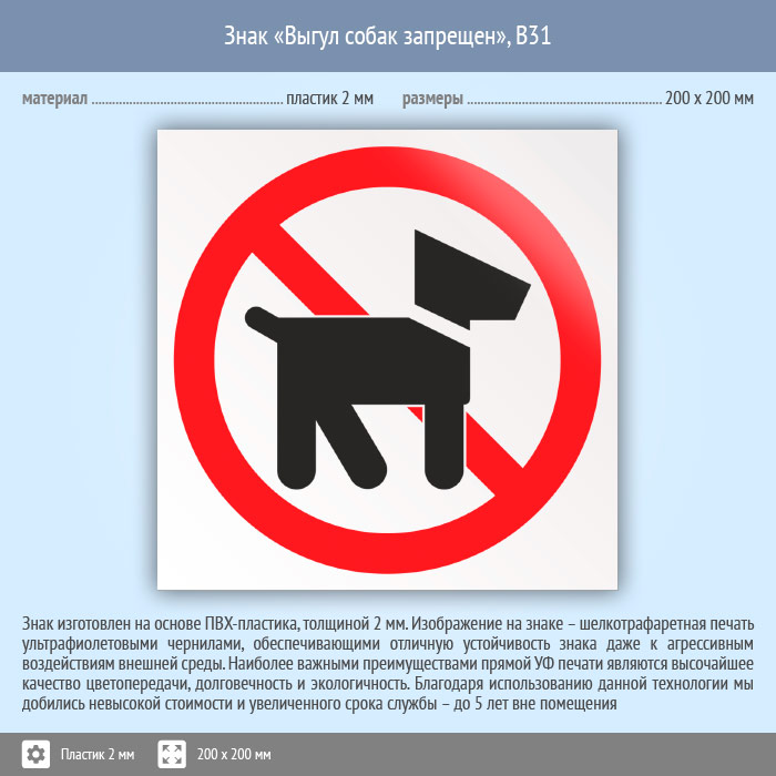 Знак «Выгул собак запрещен», B31 (пластик, 200х200 мм) в Улан-Удэ купить