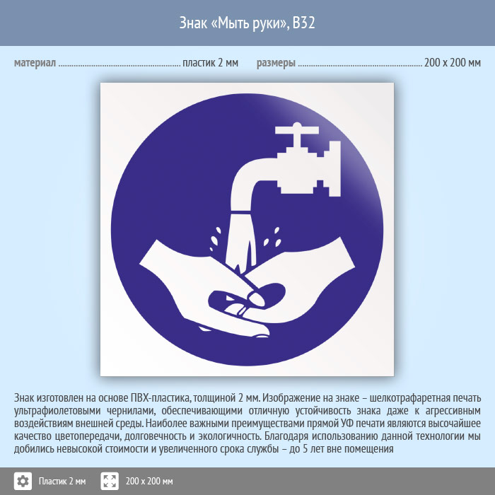 Знак «Мыть руки», B32 (пластик, 200х200 мм) в Улан-Удэ купить