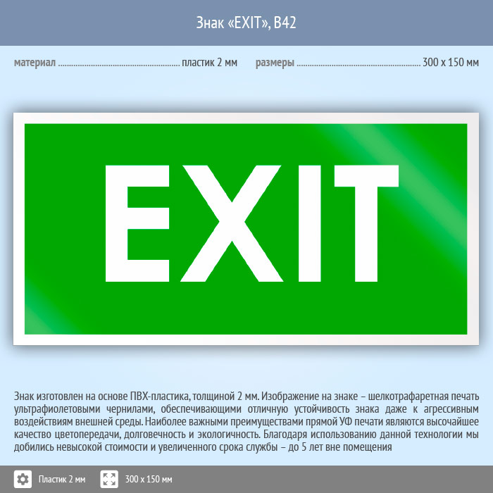Знак «EXIT», B42 (пластик, 300х150 мм) в Улан-Удэ купить