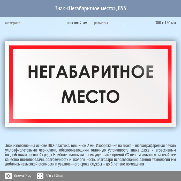 Знак «Негабаритное место», B55 (пластик, 300х150 мм) в Улан-Удэ купить