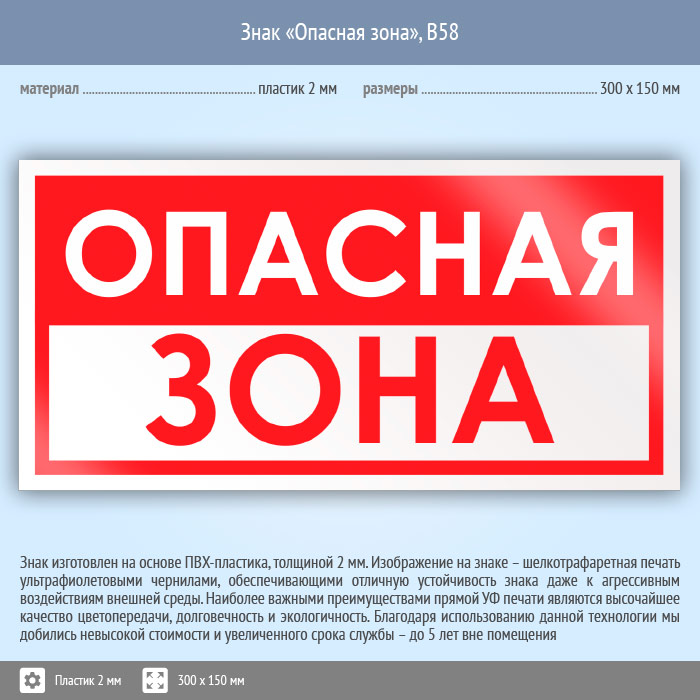 Знак «Опасная зона», B58 (пластик, 300х150 мм) в Улан-Удэ купить