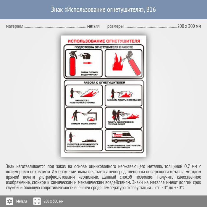 Знак «Использование огнетушителя», B16 (металл, 200х300 мм) в Улан-Удэ купить
