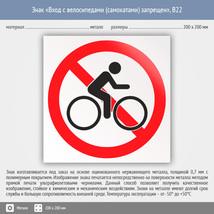 Знак «Вход с велосипедами (самокатами) запрещен», B22 (металл, 200х200 мм) в Улан-Удэ купить