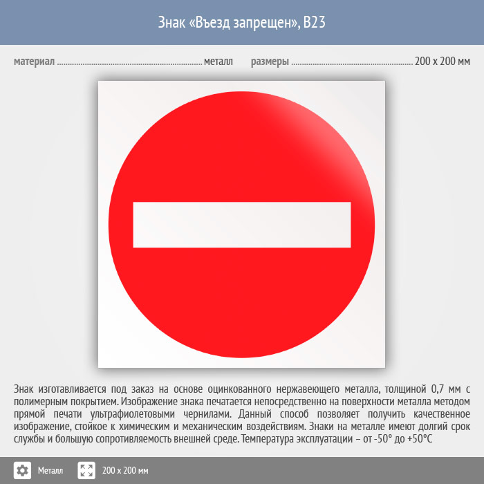 Знак «Въезд запрещен», B23 (металл, 200х200 мм) в Улан-Удэ купить