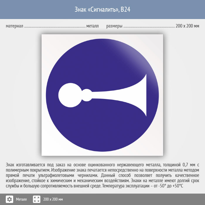 Знак «Сигналить», B24 (металл, 200х200 мм) в Улан-Удэ купить
