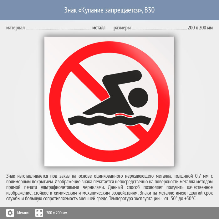 Знак «Купание запрещено», B30 (металл, 200х200 мм) в Улан-Удэ купить