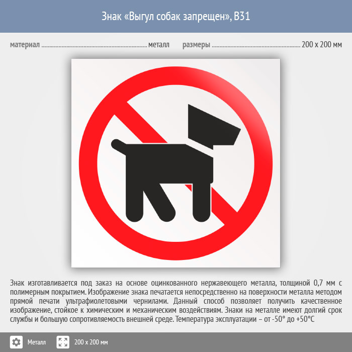 Знак «Выгул собак запрещен», B31 (металл, 200х200 мм) в Улан-Удэ купить