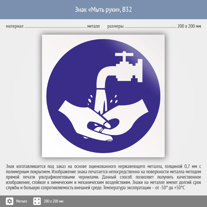 Знак «Мыть руки», B32 (металл, 200х200 мм) в Улан-Удэ купить