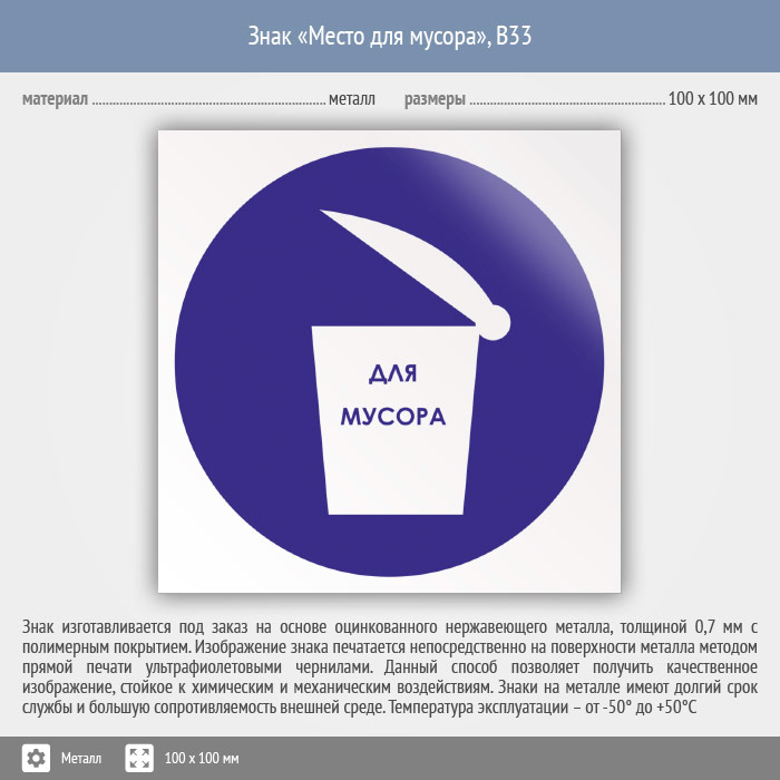 Знак «Место для мусора», B33 (металл, 100х100 мм) в Улан-Удэ купить
