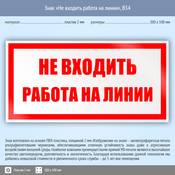 Знак «Не входить работа на линии», B34 (пластик, 200х100 мм) в Улан-Удэ купить