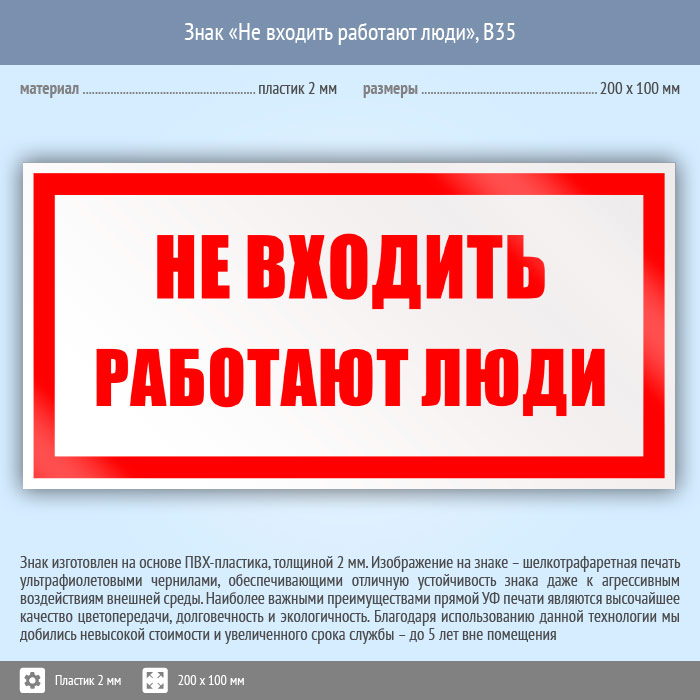Знак «Не входить работают люди», B35 (пластик, 200х100 мм) в Улан-Удэ купить