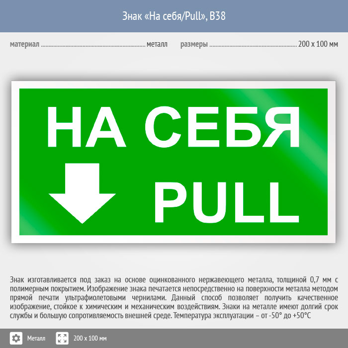 Знак «На себя/Pull», B38 (металл, 200х100 мм) в Улан-Удэ купить