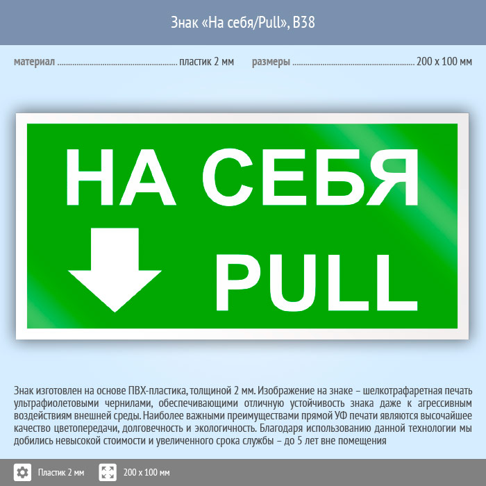 Знак «На себя/Pull», B38 (пластик, 200х100 мм) в Улан-Удэ купить