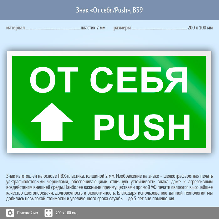 Знак «От себя/Push», B39 (пластик, 200х100 мм) в Улан-Удэ купить