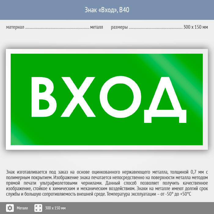 Знак «Вход», B40 (металл, 300х150 мм) в Улан-Удэ купить