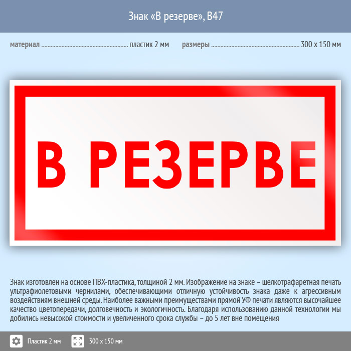 Знак «В резерве», B47 (пластик, 300х150 мм) в Улан-Удэ купить
