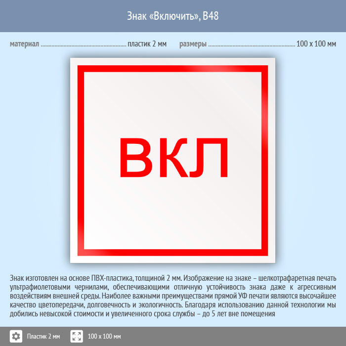 Знак «Включить», B48 (пластик, 100х100 мм) в Улан-Удэ купить