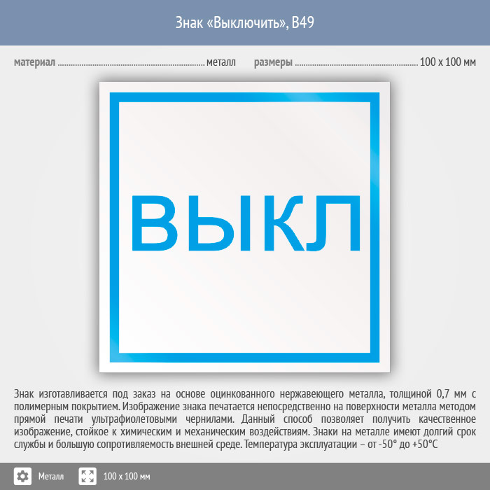 Знак «Выключить», B49 (металл, 100х100 мм) в Улан-Удэ купить