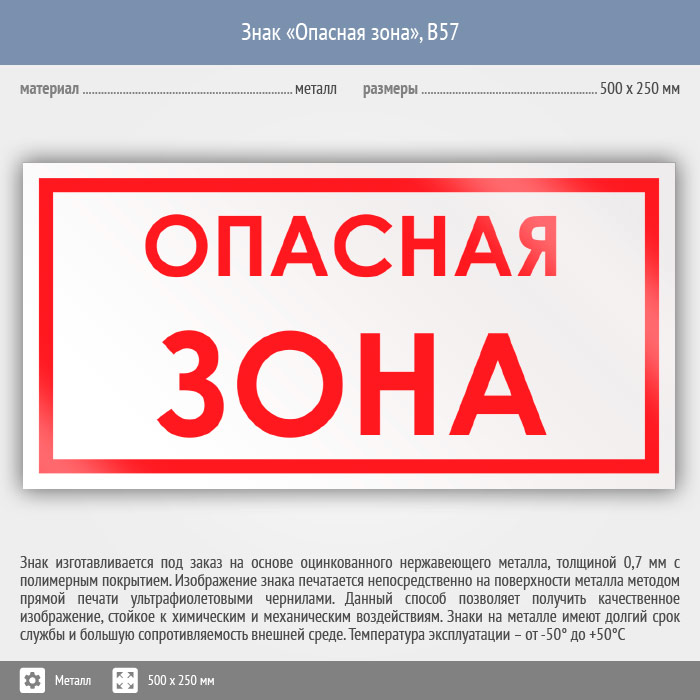 Знак «Опасная зона», B57 (металл, 500х250 мм) в Улан-Удэ купить