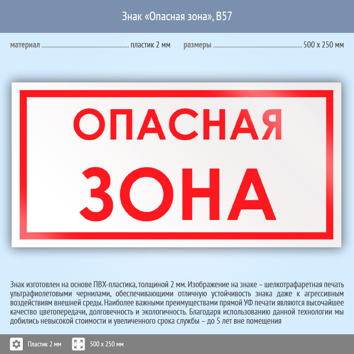 Знак «Опасная зона», B57 (пластик, 500х250 мм) в Улан-Удэ купить