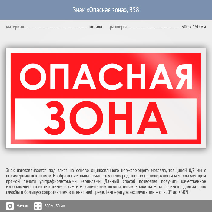 Знак «Опасная зона», B58 (металл, 300х150 мм) в Улан-Удэ купить
