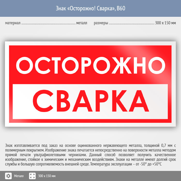 Знак «Осторожно! Сварка», B60 (металл, 300х150 мм) в Улан-Удэ купить