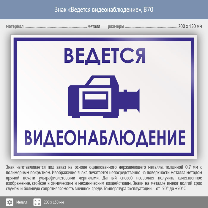 Знак «Ведется видеонаблюдение», B70 (металл, 200х150 мм) в Улан-Удэ купить