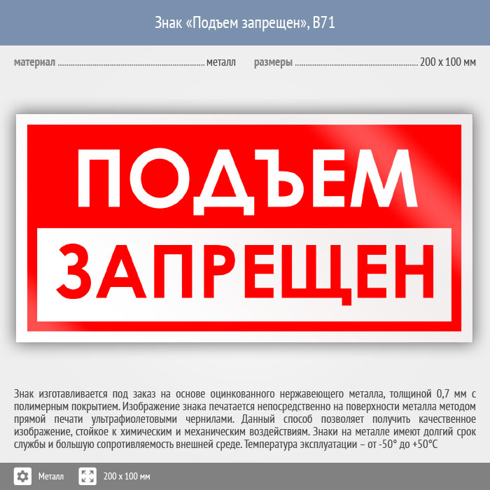 Знак «Подъем запрещен», B71 (металл, 200х100 мм) в Улан-Удэ купить