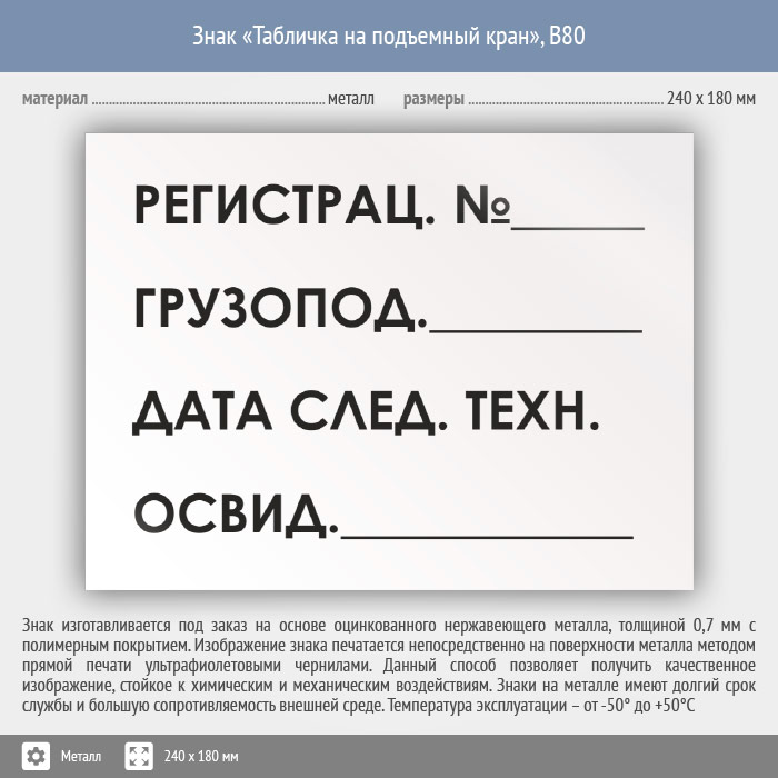 Знак «Табличка на подъемный кран», B80 (металл, 240х180 мм) в Улан-Удэ купить
