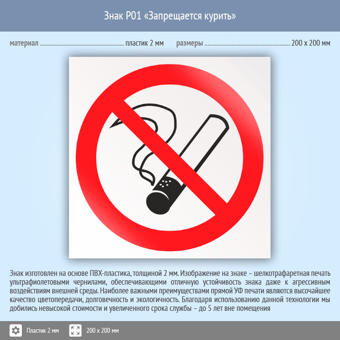 Знак P01 «Запрещается курить» (пластик, 200х200 мм) в Улан-Удэ купить