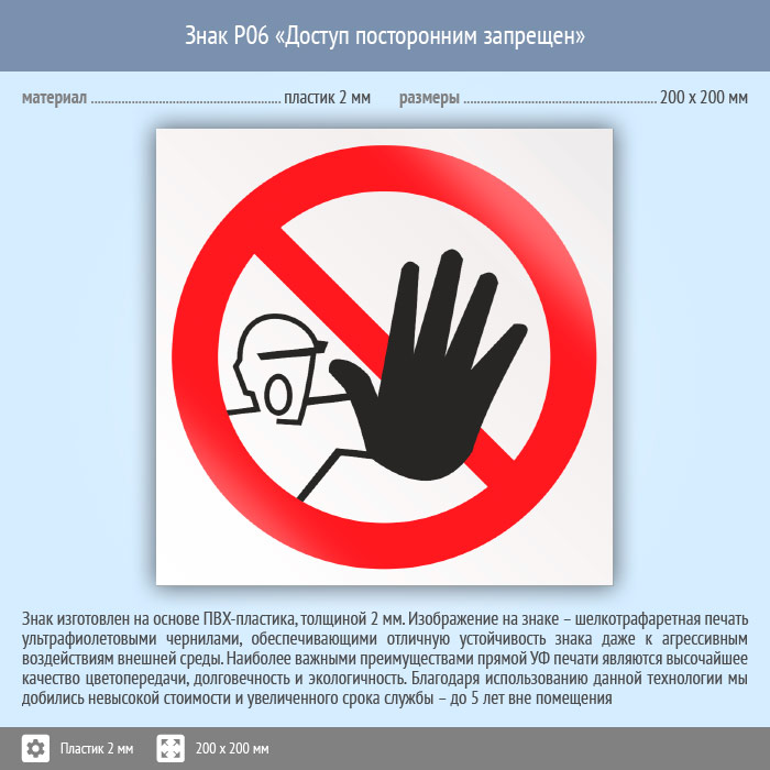Знак P06 «Доступ посторонним запрещен» (пластик, 200х200 мм) в Улан-Удэ купить