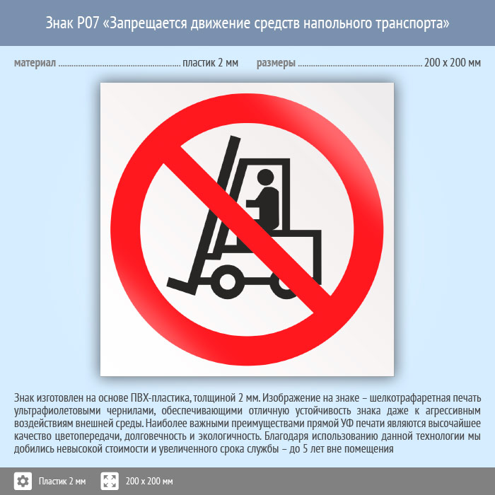 Знак P07 «Запрещается движение средств напольного транспорта» (пластик, 200х200 мм) в Улан-Удэ купить