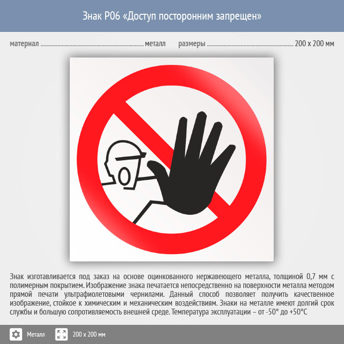Знак P06 «Доступ посторонним запрещен» (металл, 200х200 мм) в Улан-Удэ купить