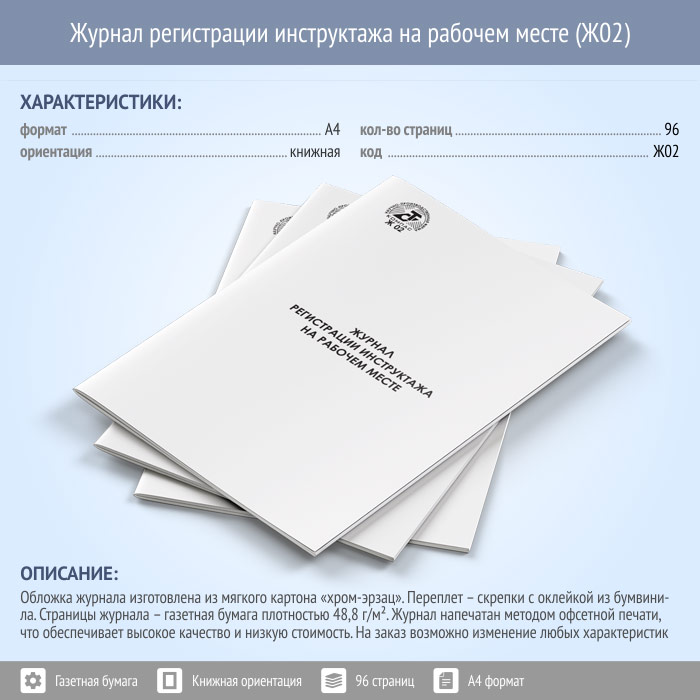 Журнал регистрации инструктажа на рабочем месте (96 стр., Ж02) в Улан-Удэ купить