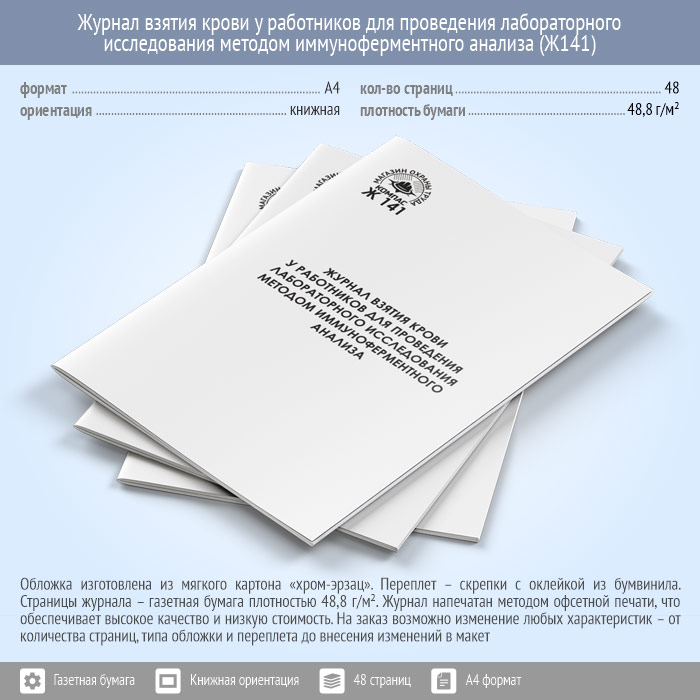 Журнал взятия крови у работников для проведения лабораторного исследования методом иммуноферментного анализа (48 стр., Ж141) в Улан-Удэ купить