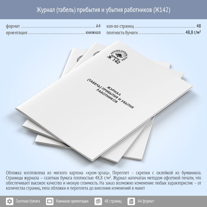 Журнал (табель) прибытия и убытия работников (48 стр., Ж142) в Улан-Удэ купить