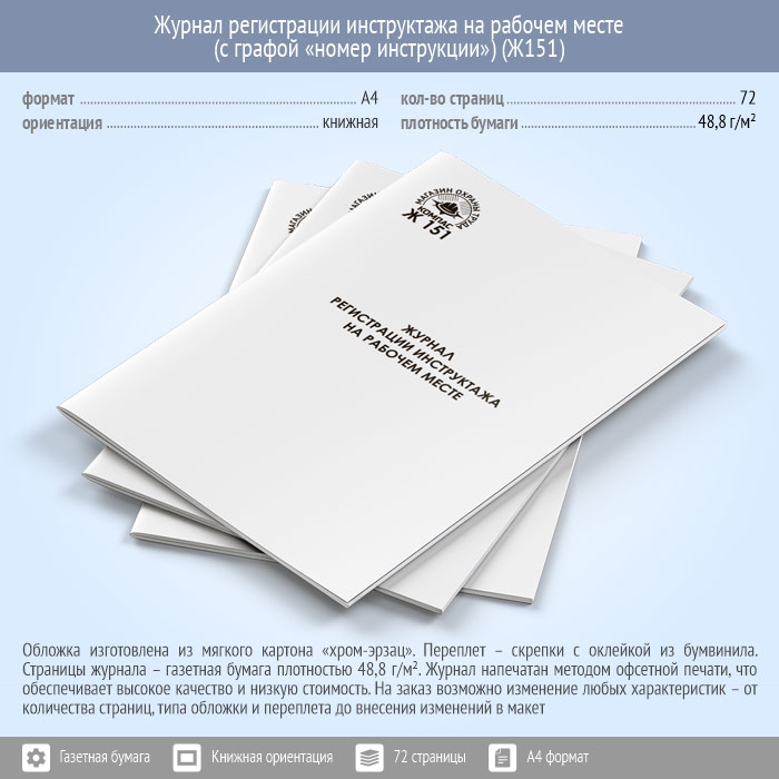 Журнал регистрации инструктажа на рабочем месте (с графой «номер инструкции») (72 стр., Ж151) в Улан-Удэ купить