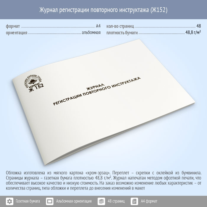 Журнал регистрации повторного инструктажа (48 стр., Ж152) в Улан-Удэ купить