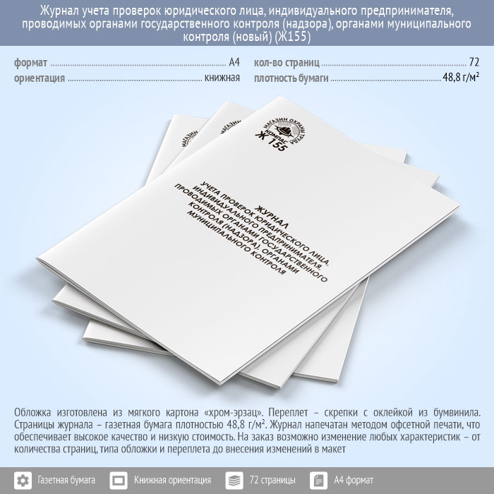 Журнал учета проверок юридического лица, индивидуального предпринимателя, проводимых органами государственного контроля (надзора), органами муниципального контроля (новый) (72 стр., Ж155) в Улан-Удэ купить