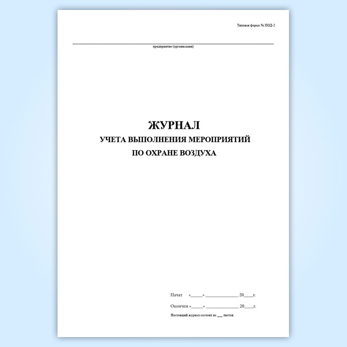 Журнал учета выполнения мероприятий по охране воздуха (форма ПОД-2) в Улан-Удэ купить