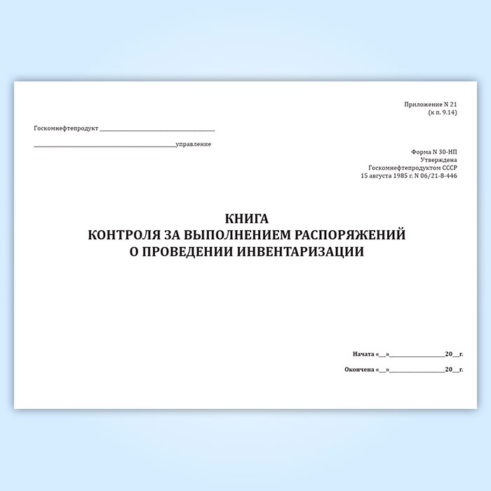 Книга контроля за выполнением распоряжений о проведении инвентаризации (форма № 30-НП) в Улан-Удэ купить
