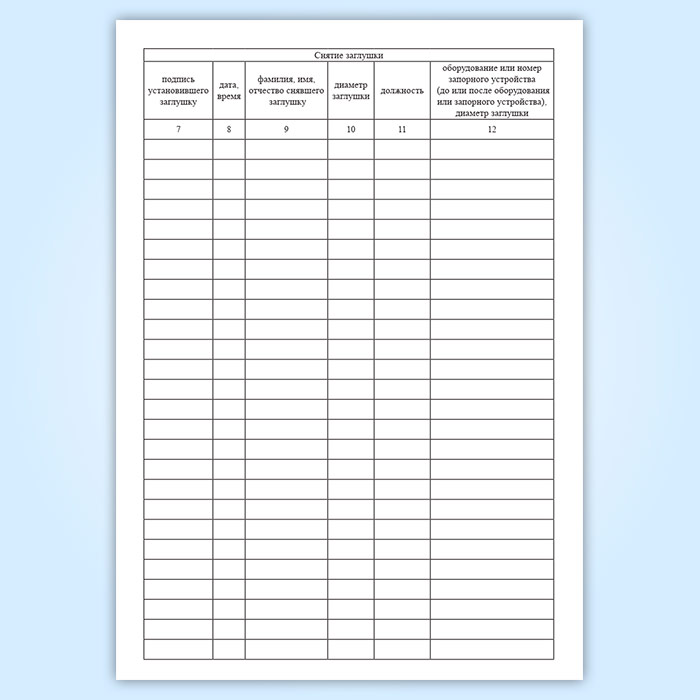 Журнал установки и снятия заглушек в Улан-Удэ купить