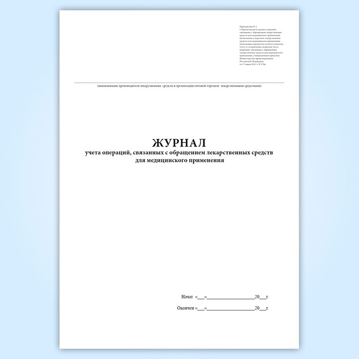 Журнал учета операций, связанных с обращением лекарственных средств для медицинского применения (для производителя лекарственных средств и организации оптовой торговли лекарственными средствами) в Улан-Удэ купить