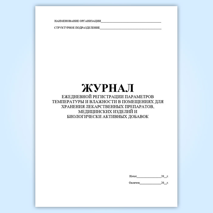 Журнал ежедневной регистрации параметров температуры и влажности в помещениях для хранения лекарственных препаратов, медицинских изделий и биологически активных добавок в Улан-Удэ купить