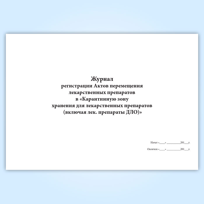 Журнал регистрации Актов перемещения лекарственных препаратов в «Карантинную зону хранения для лекарственных препаратов (включая лек. препараты ДЛО)» в Улан-Удэ купить