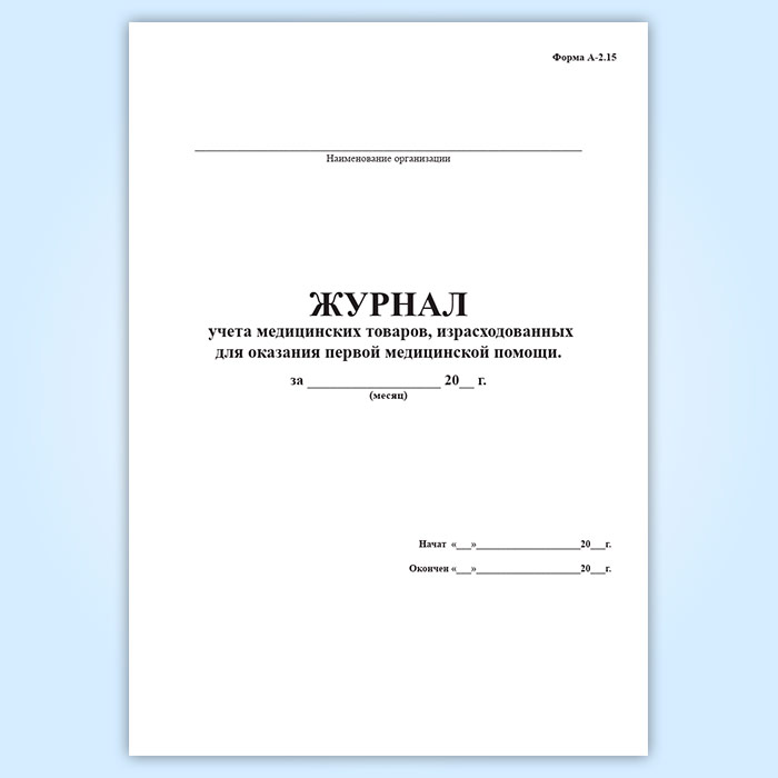 Журнал учета медицинских товаров, израсходованных для оказания первой медицинской помощи (форма А-2.15) в Улан-Удэ купить