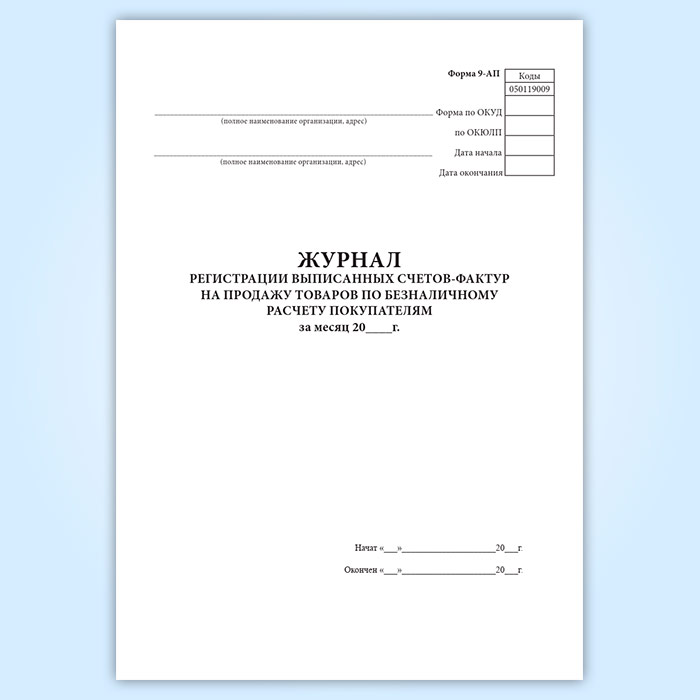 Журнал регистрации выписанных счетов-фактур на продажу товаров по безналичному расчету покупателям (форма 9-АП) в Улан-Удэ купить