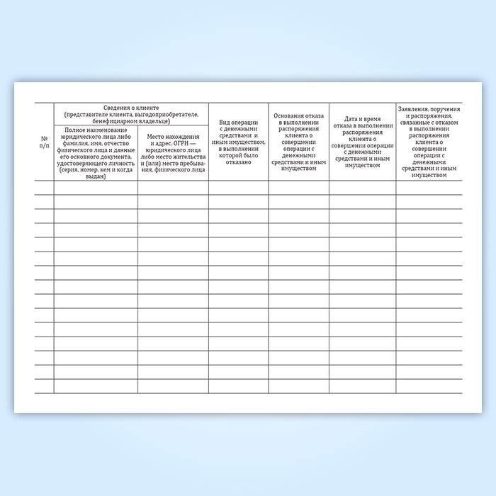 Журнал учета отказов в выполнении распоряжения клиентов о совершении операции с денежными средствами и иным имуществом в Улан-Удэ купить
