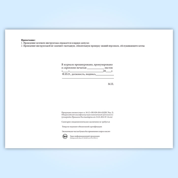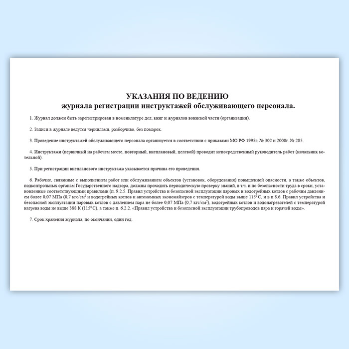 Журнал регистрации инструктажей обслуживающего персонала котельной (для воинских частей, предприятий и организаций) в Улан-Удэ купить